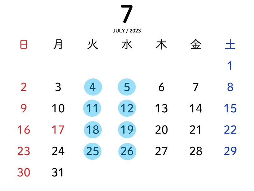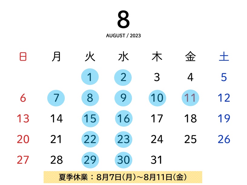 7月8月の営業日についてお知らせいたします。