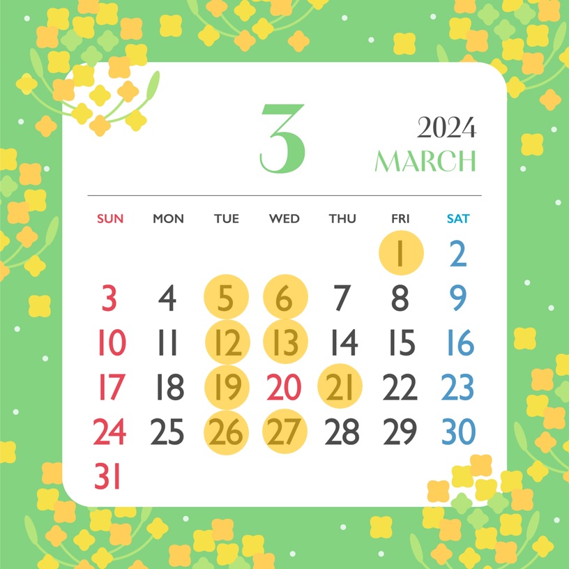 ~3月の営業日についてのお知らせ~
