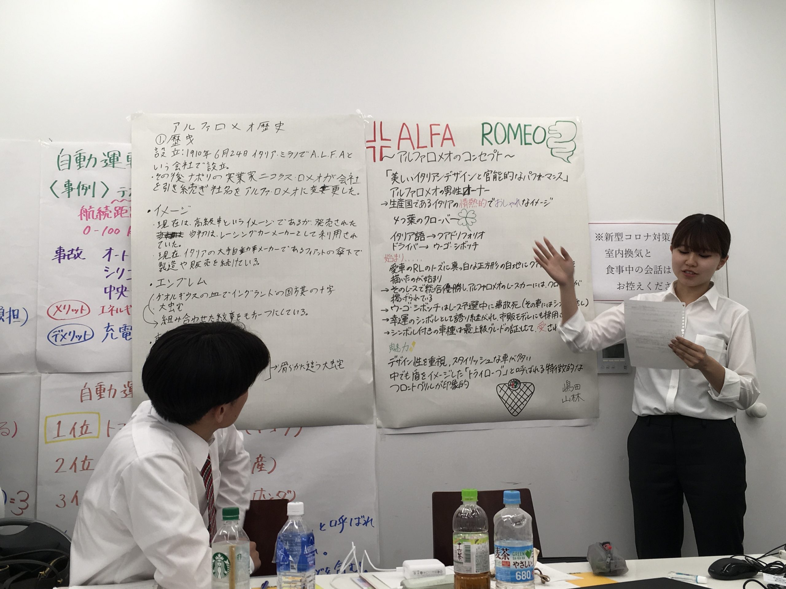 歴史・客層・サスティナブル電気自動車などを学び発表し合いました。