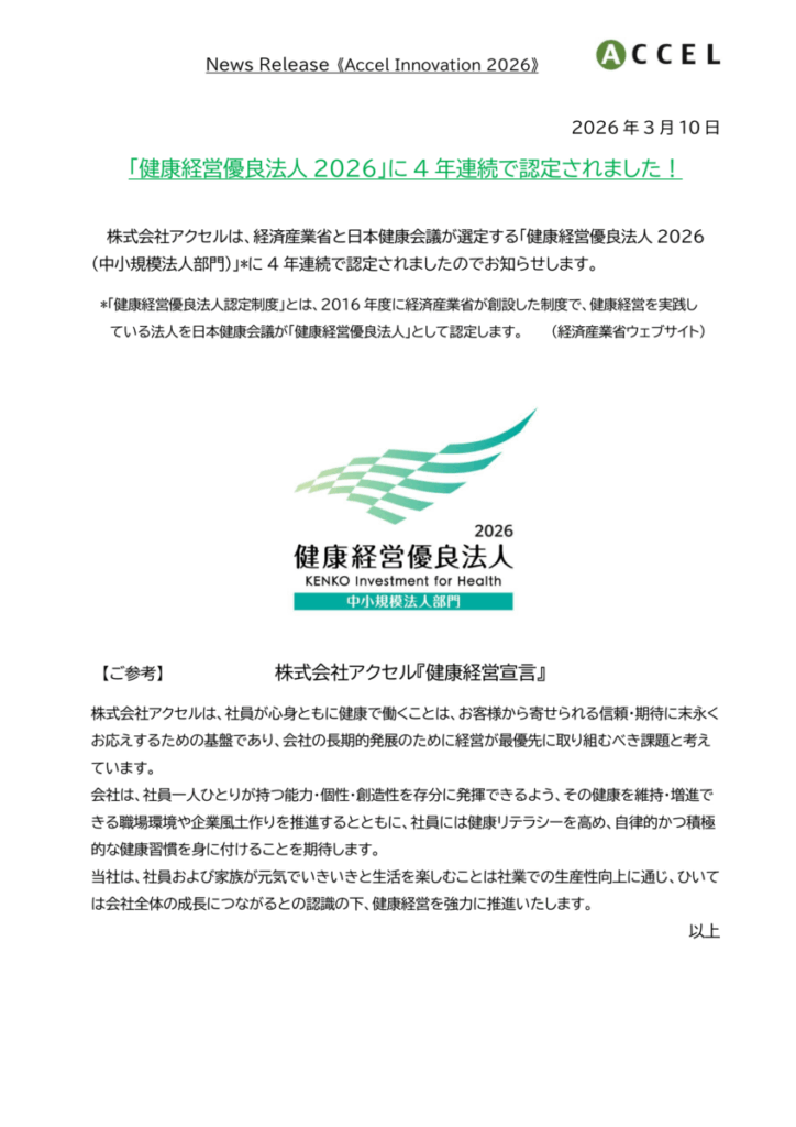 「健康経営優良法人2026」に4年連続で認定されました!